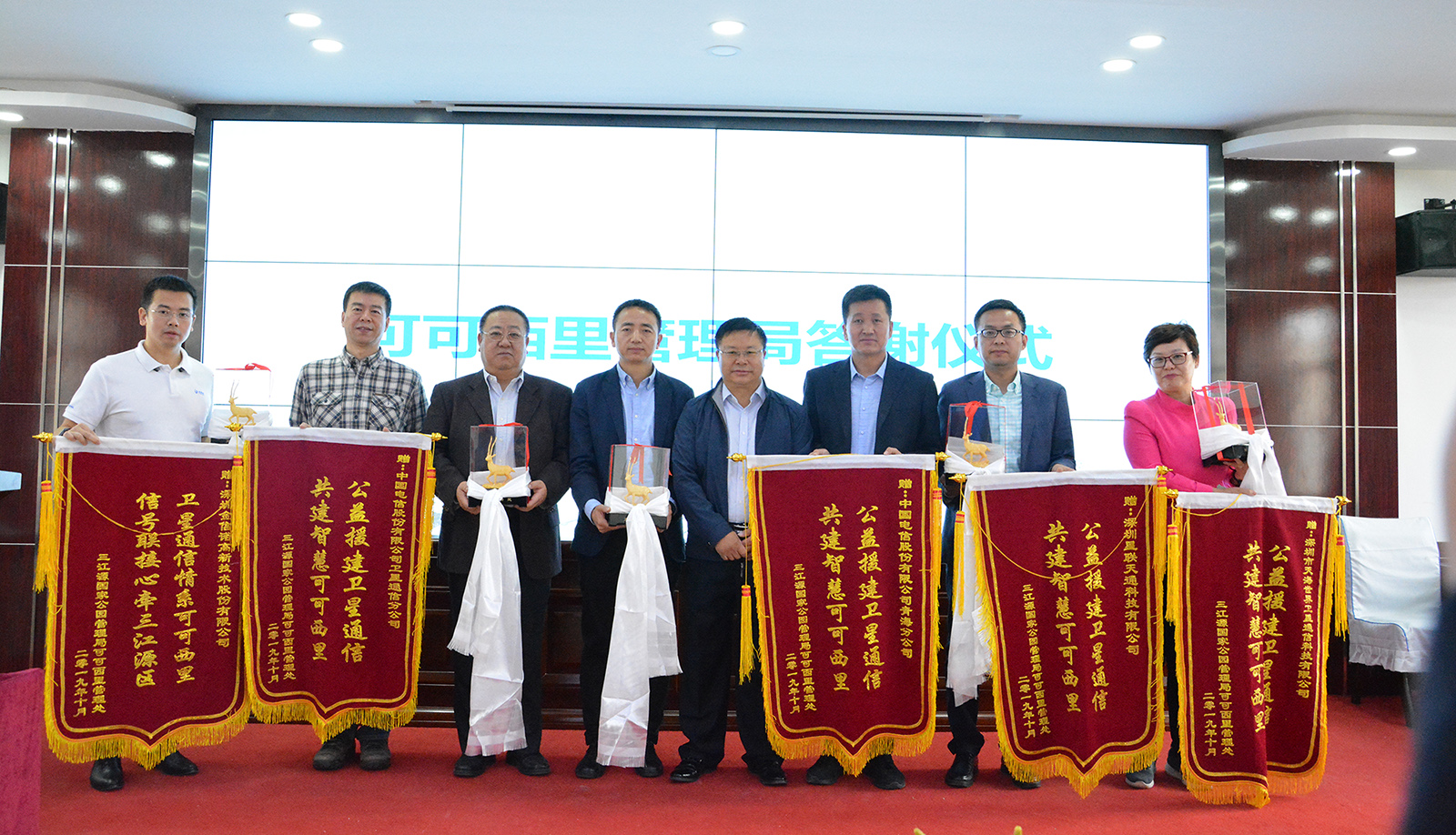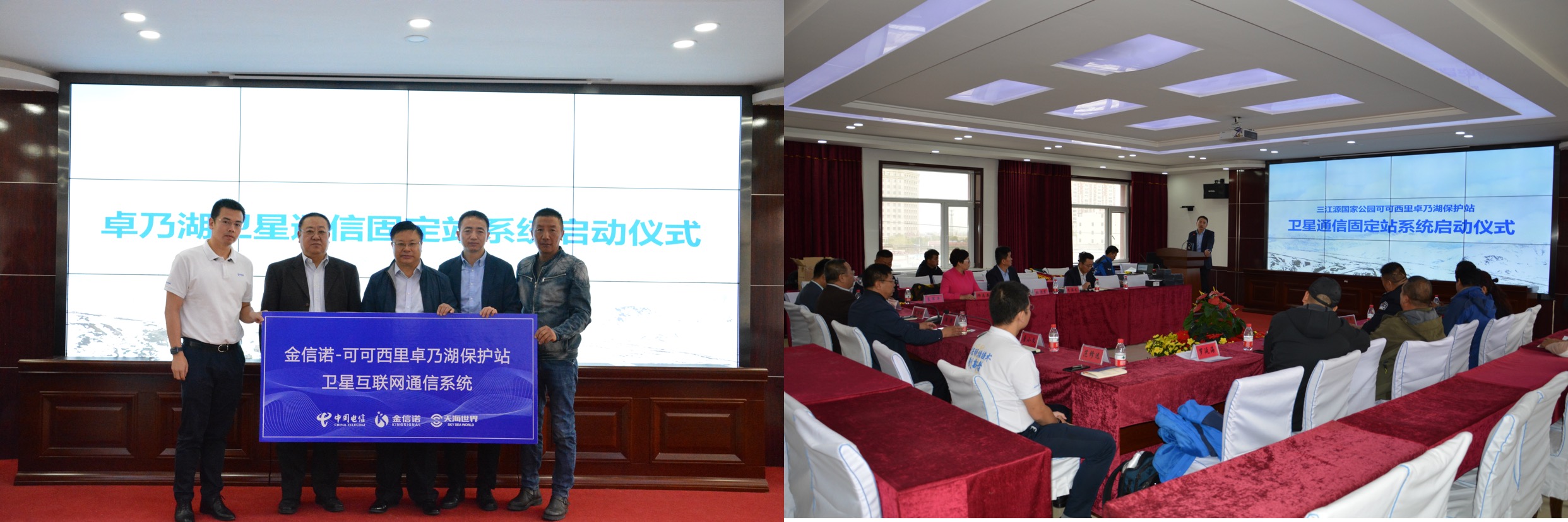 10月19日,在可可西里保護(hù)區(qū)管理局,舉行了一場簡單而隆重的啟動儀式,中國電信股份有限公司衛(wèi)星通信分公司呂俊俐總經(jīng)理、中國電信股份有限公司青海分公司唐小文總經(jīng)理、深圳金信諾高新科技有限公司無線與光網(wǎng)絡(luò)產(chǎn)品經(jīng)營團(tuán)隊副總經(jīng)理范修遠(yuǎn)、深圳市天海世界衛(wèi)星通信科技有限公司邱志英總經(jīng)理、深圳星聯(lián)天通科技有限公司總經(jīng)理薛智軍等援建單位領(lǐng)導(dǎo)參加了此次卓乃湖衛(wèi)星通信固定站的啟動儀式,在管理局現(xiàn)場通過衛(wèi)星通信與卓乃湖保護(hù)站的施工人員和巡山隊員進(jìn)行了視頻連線。此次中國國電信援建內(nèi)容還包括天通移動衛(wèi)星電話、衛(wèi)星固定站及通信服務(wù),其中我國自主研發(fā)的衛(wèi)星移動系統(tǒng)——天通衛(wèi)星首次引入可可西里,從此可可西里通信進(jìn)入“手機時代”。