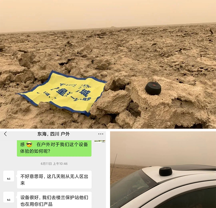 我們團(tuán)隊(duì)十來個(gè)人,在進(jìn)入羅布泊后就把這個(gè)小東西放到車頂,吸頂這個(gè)設(shè)計(jì)不錯(cuò),吸附力很強(qiáng),大風(fēng)和一路顛簸都沒有掉下來??赡軣o人區(qū)空曠吧,設(shè)備搜信號(hào)特別快,操作也很簡(jiǎn)單,手機(jī)提前下個(gè)APP,按照說明接入就可以了,通話質(zhì)量和普通衛(wèi)星電話沒有什么差別,而且不用去查通訊錄了,手機(jī)上直接打??头f這個(gè)衛(wèi)星貓可以同時(shí)8個(gè)人接入,反正我們?nèi)鍌€(gè)人是沒問題。我覺得還有一點(diǎn)優(yōu)勢(shì),就是設(shè)備吸在車頂,人坐在車?yán)锞涂梢源蛐l(wèi)星電話,要是遇上天氣不好,這就太實(shí)用了。設(shè)備也有不足之處,是僅限安卓手機(jī)可以用,暫時(shí)不支持蘋果手機(jī)。